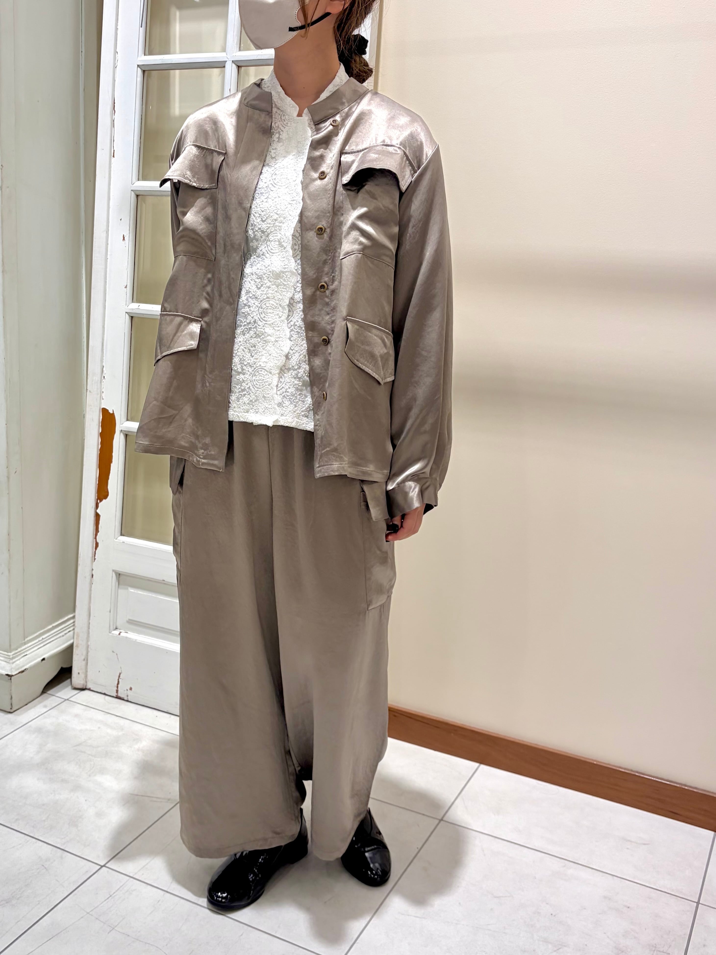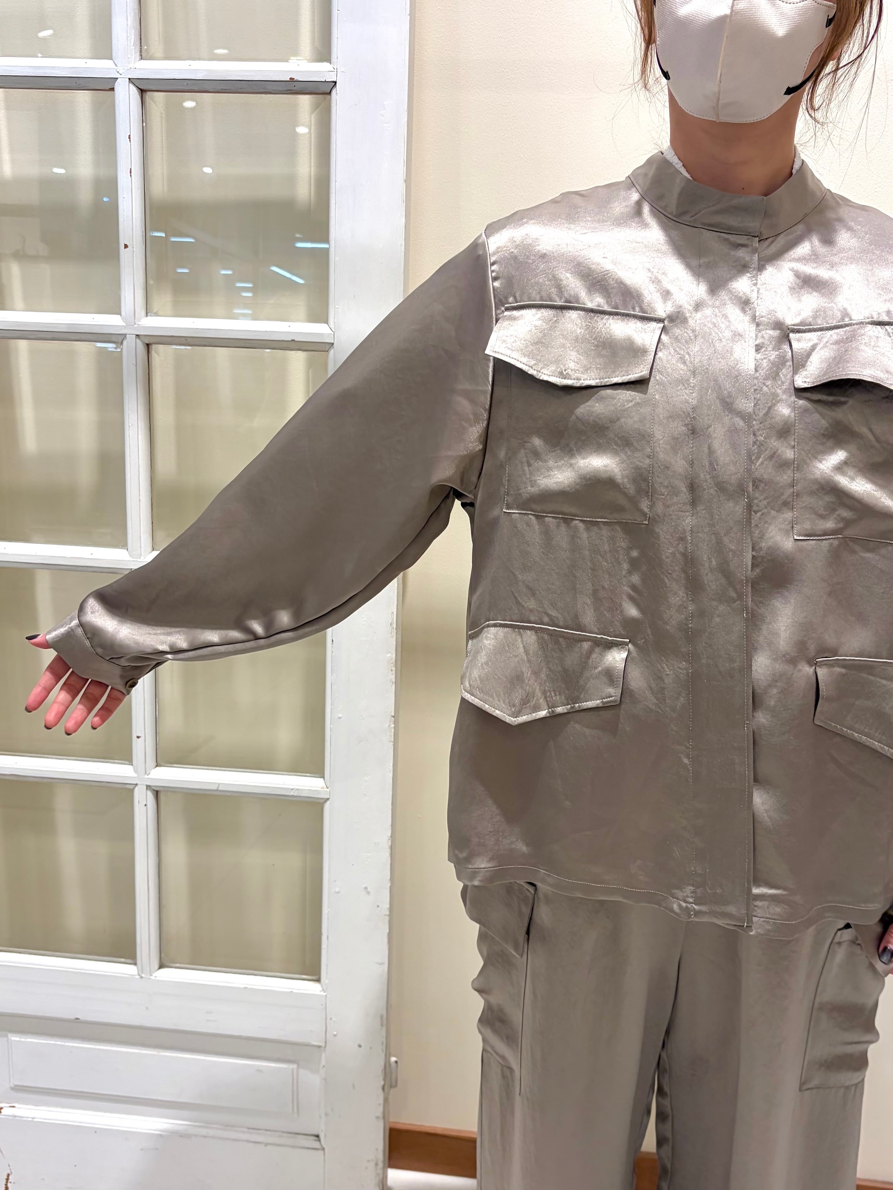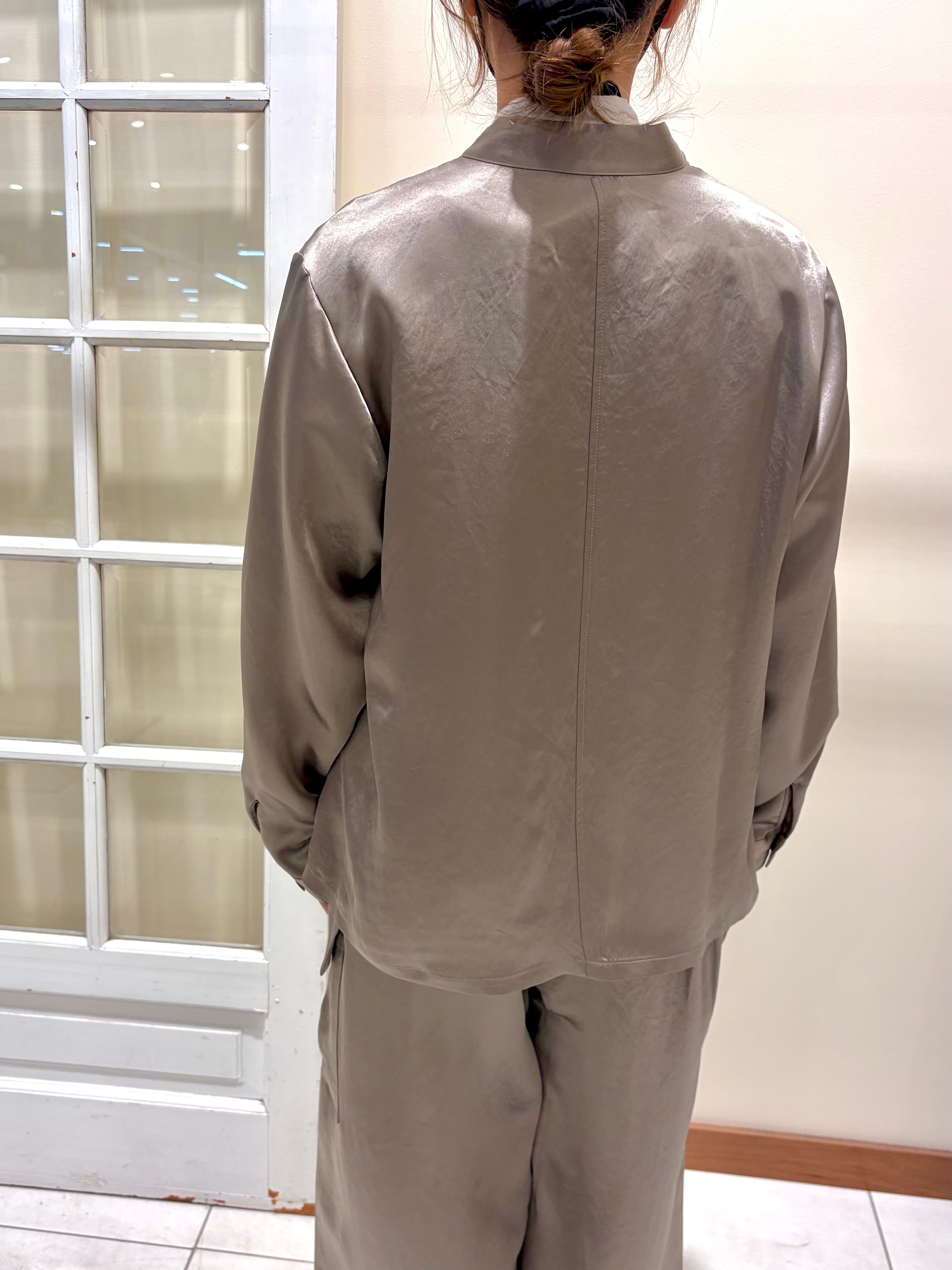 ワークディテールを効かせつつ、ほんのりとしたツヤ感がカジュアルな着こなしも女性らしく格上げしてくれます。肌にすべるように馴染む軽やかな着心地で、インナー次第でシーズンレスに活躍する一枚です。