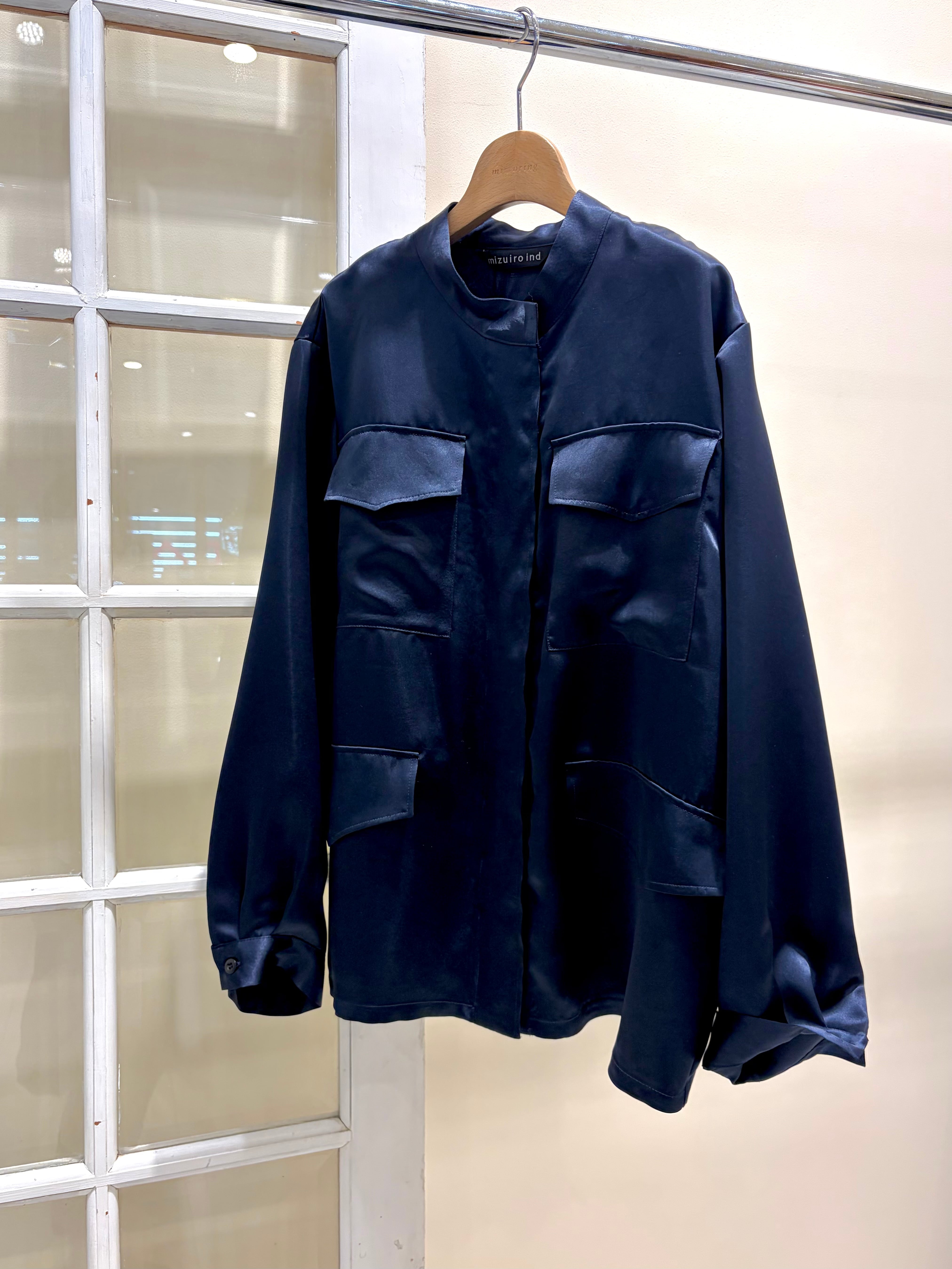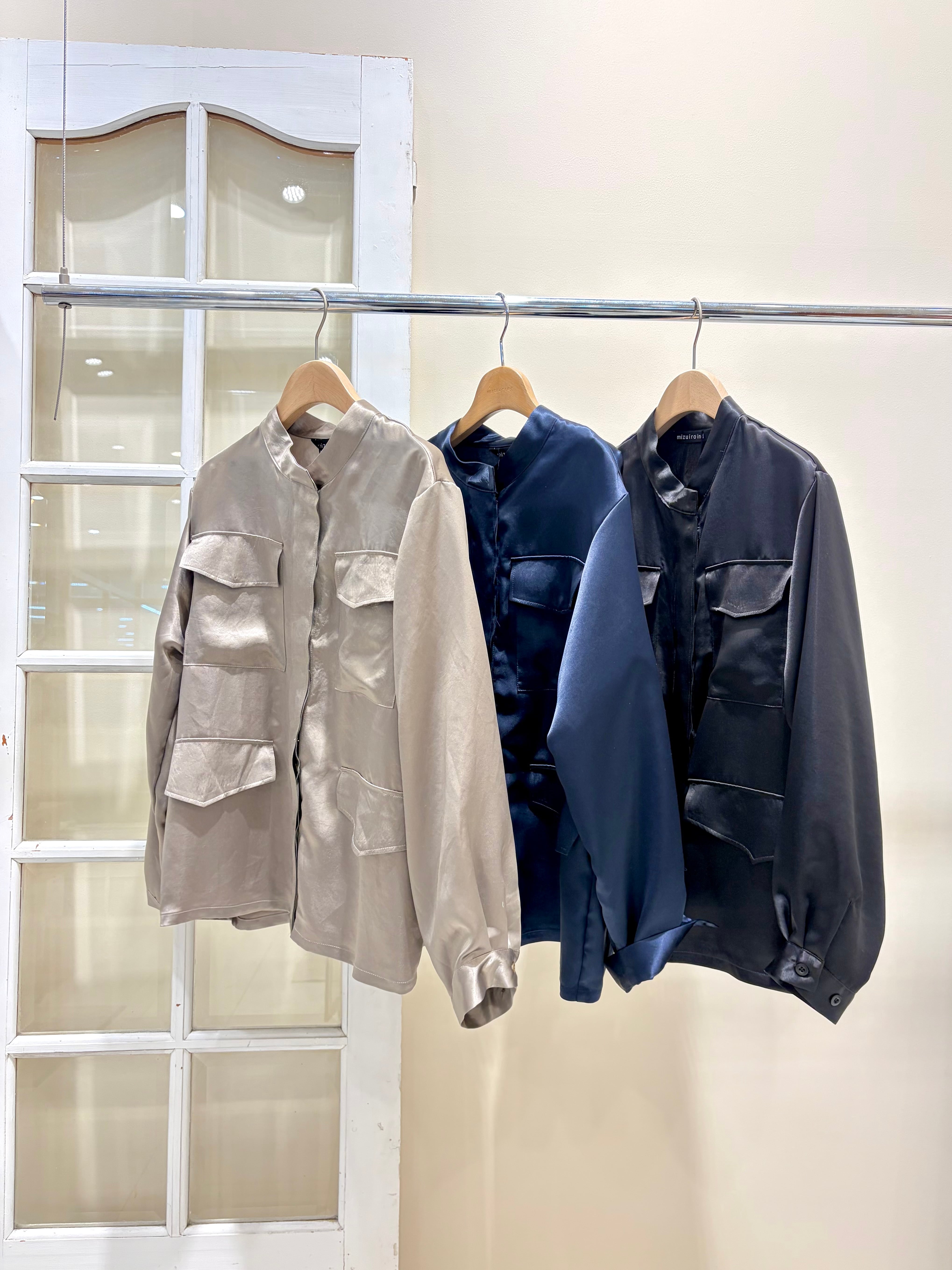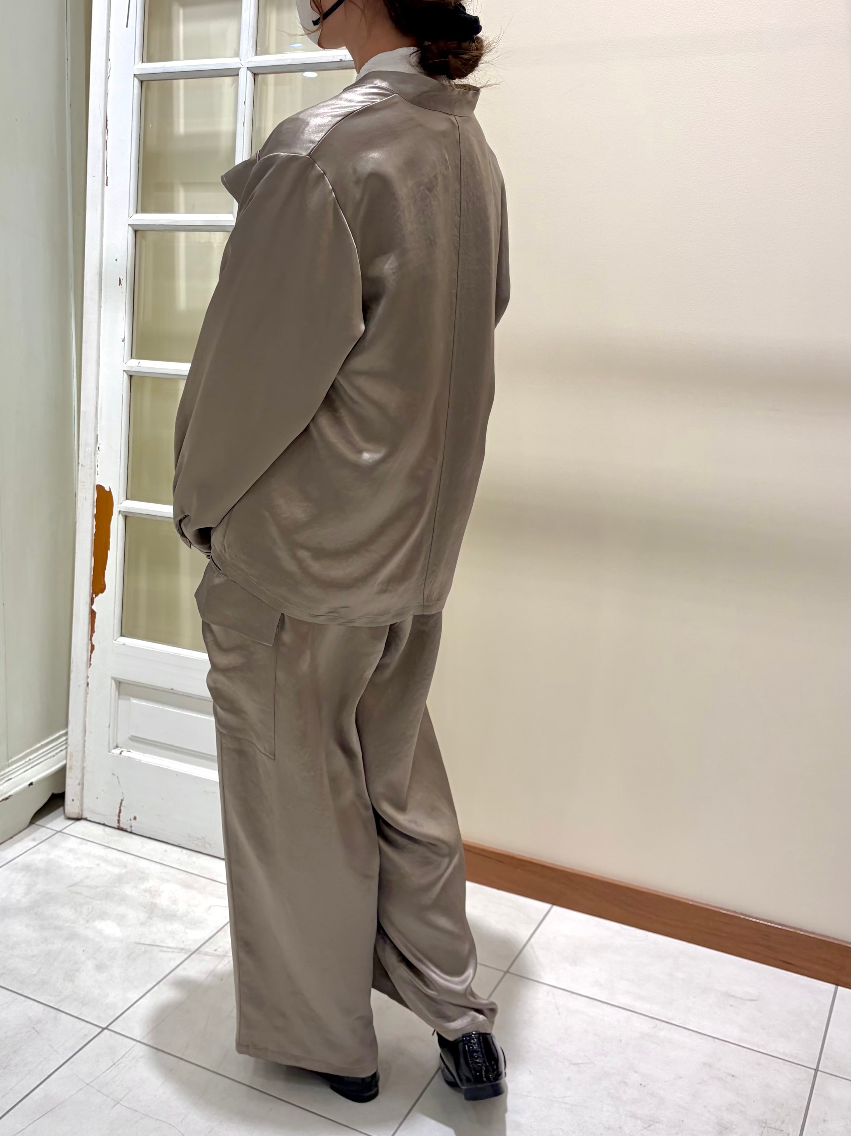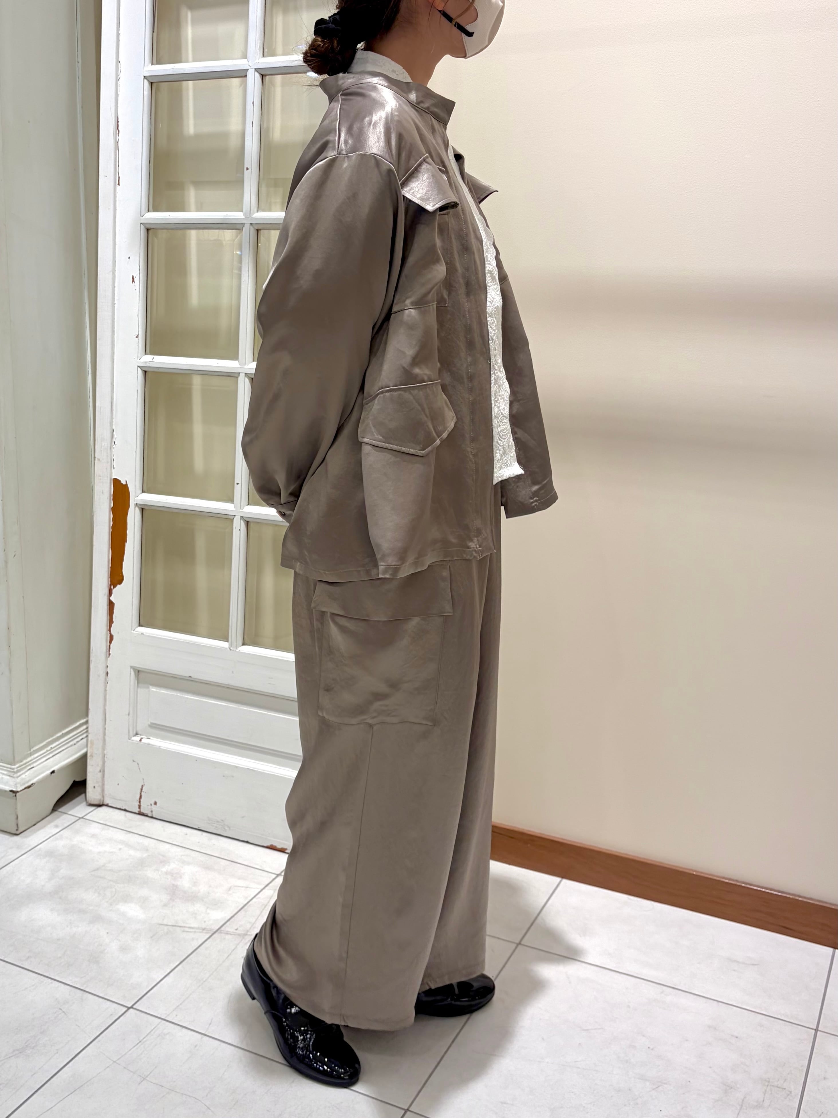 ワークディテールを効かせつつ、ほんのりとしたツヤ感がカジュアルな着こなしも女性らしく格上げしてくれます。肌にすべるように馴染む軽やかな着心地で、インナー次第でシーズンレスに活躍する一枚です。