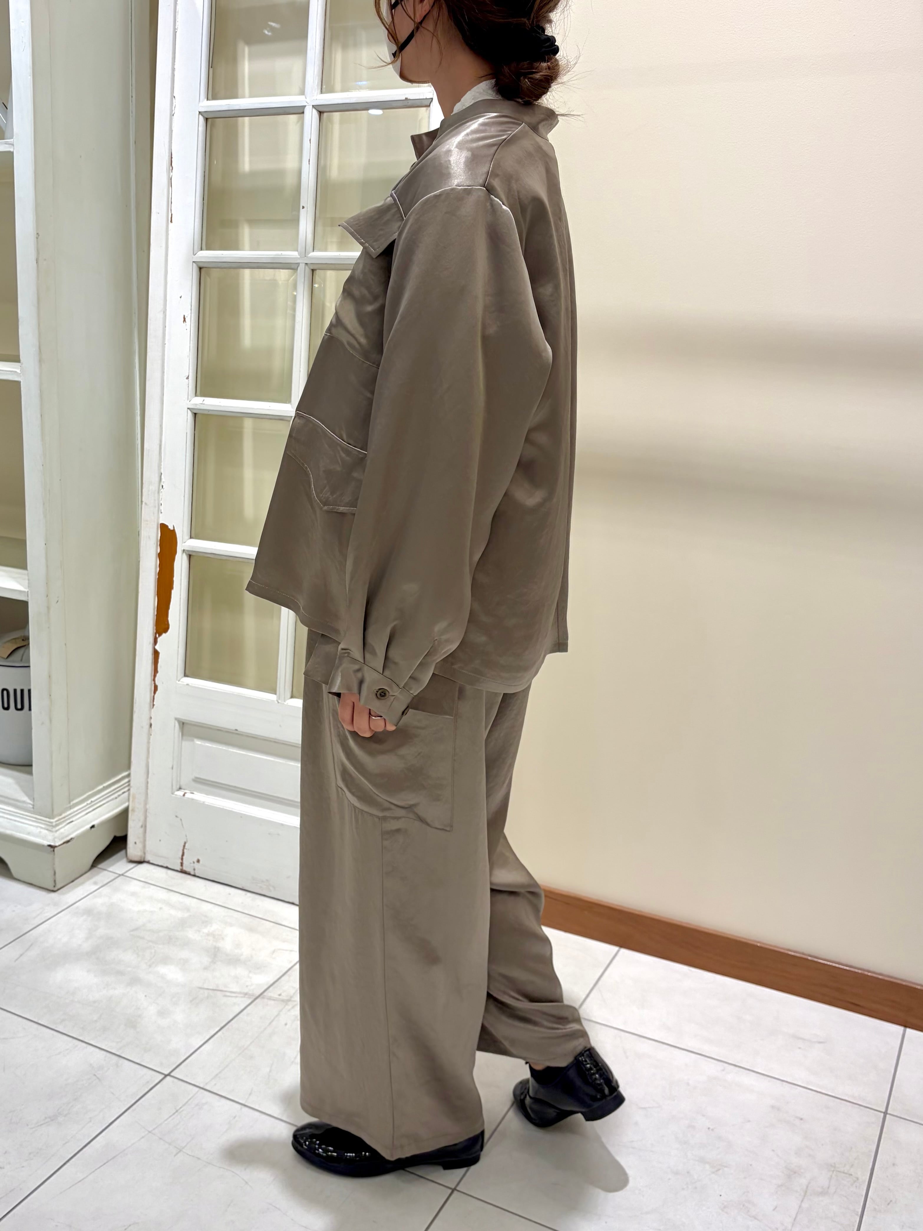 上品な光沢となめらかなタッチが魅力のサテンワークシャツです。