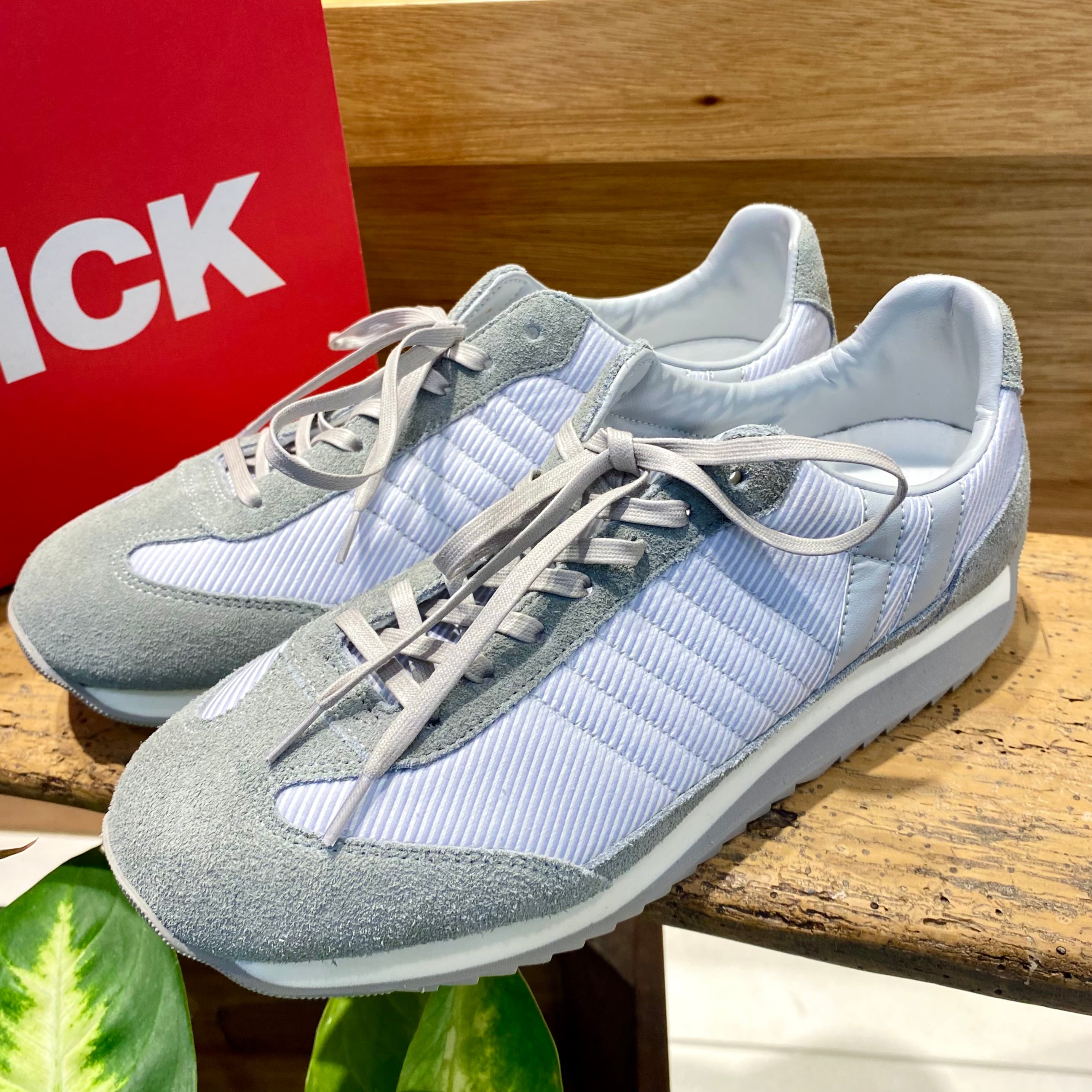 織で表現されたくっきりとしたストライプ柄が春夏にぴったりな爽やかな1足となってます。